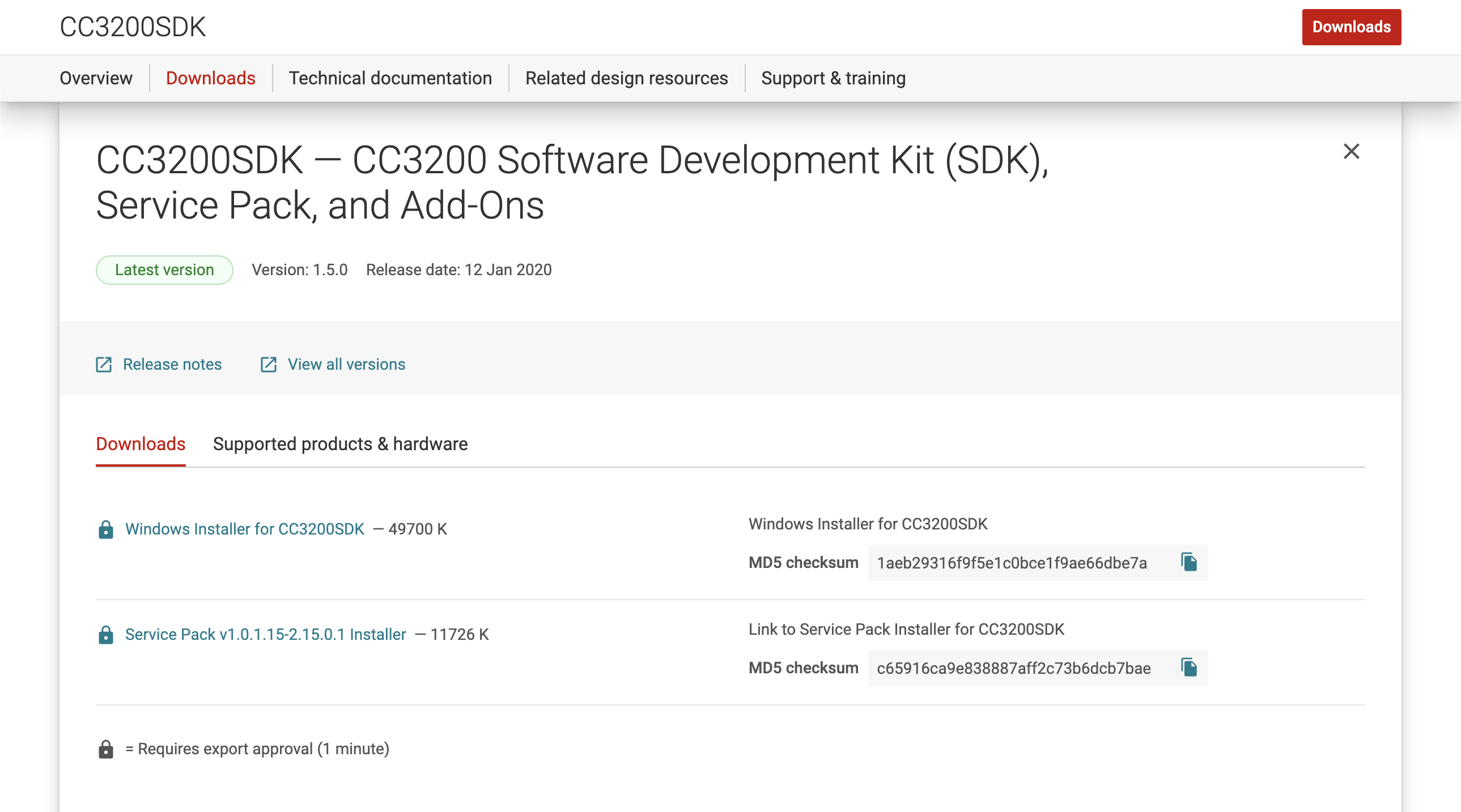 CC3200 Software Development Kit [v1.5.0] and CC3200SDK-ServicePack [v1.0.1.15-2.15.0.1]