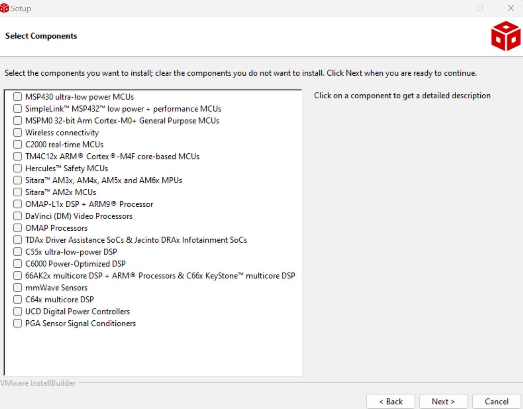 . Both of these require a TI Account. When prompted, indicate "Civil Use", agree to the License Agreement, and continue.Select Components